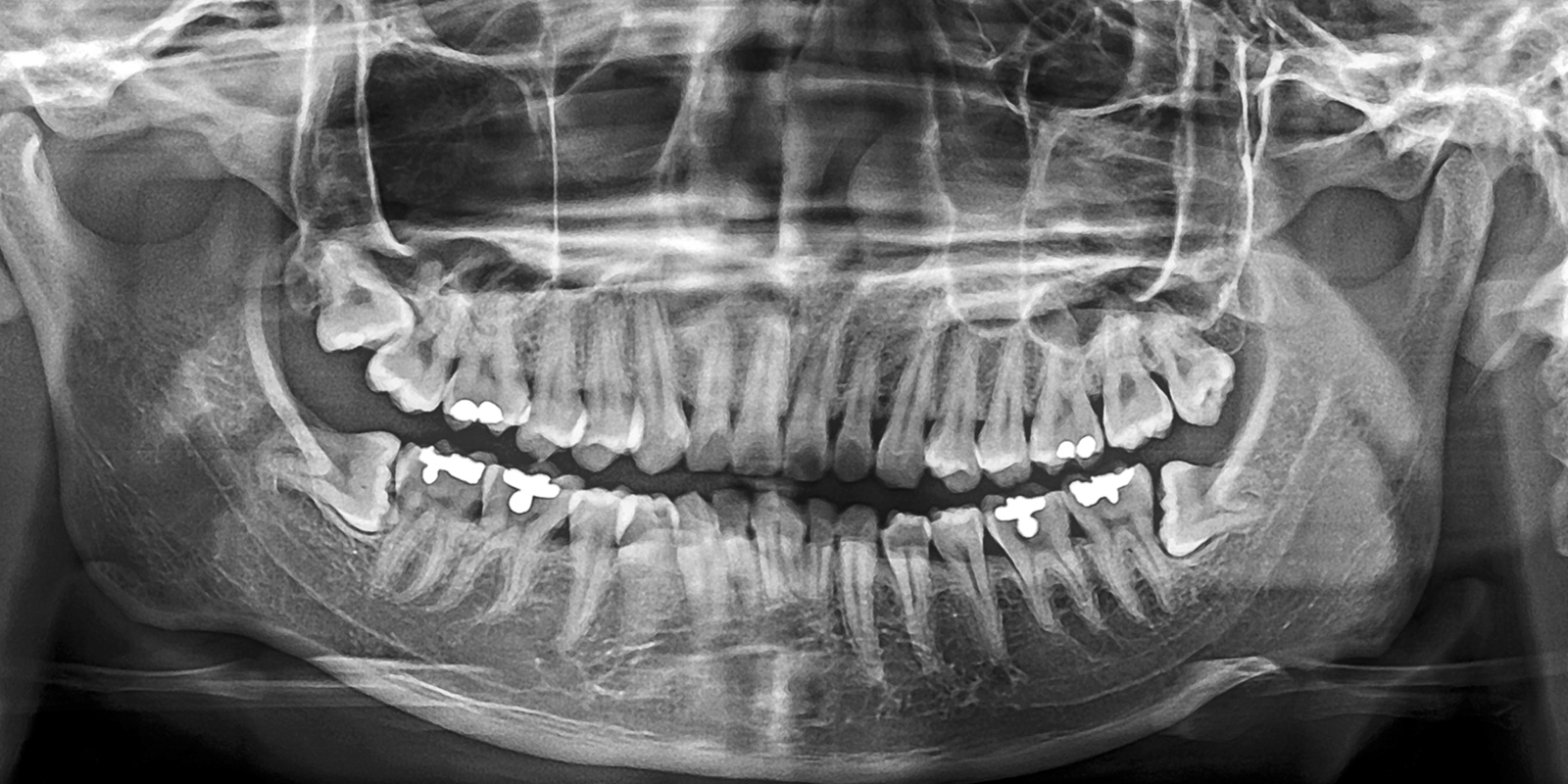 パノラマレントゲンは、お口全体を1枚の画像として撮影できる広範囲のレントゲン写真です。これにより、親知らずの位置や向き、そして周囲の歯との関係がひと目でわかります。
