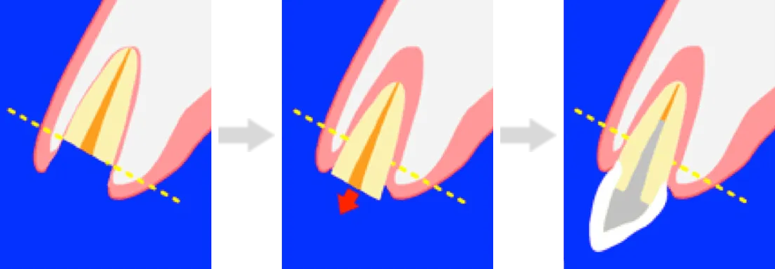 歯ぐきや周囲の骨を丁寧に取り除き、歯根をしっかり露出させることで、被せ物をしっかり装着できるようにします。