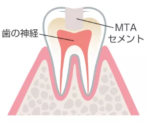 MTAセメントには、虫歯部分を殺菌・抗菌し、再感染を防ぐ働きがあります。さらに、歯の組織を回復しやすくする性質もあります。