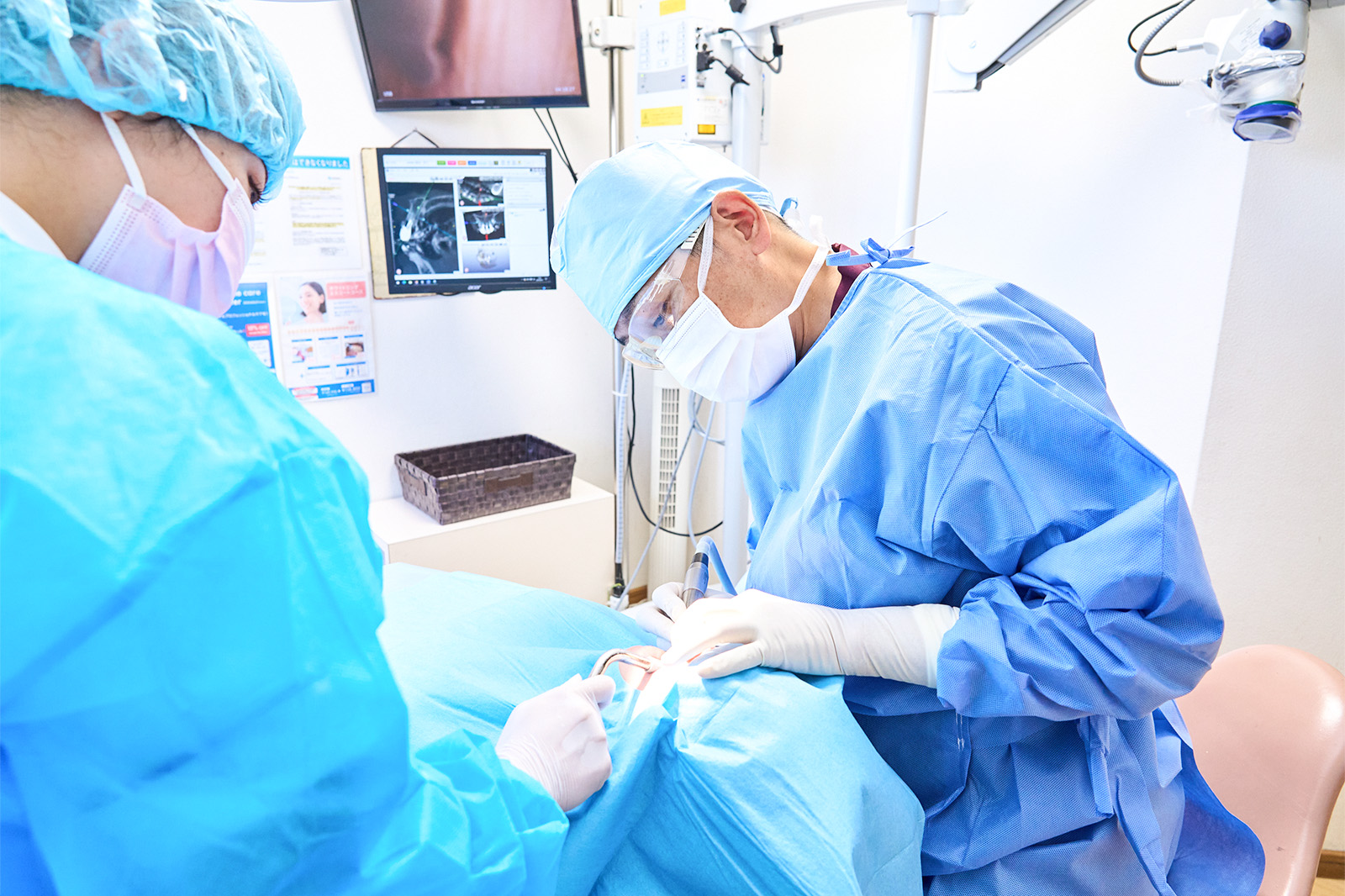 しかし、炎症が強い場合には抜歯を選択せざるを得ないこともあります。そこで当院では「歯根端切除術」という方法を取り入れ、歯を残せる可能性を高めています。