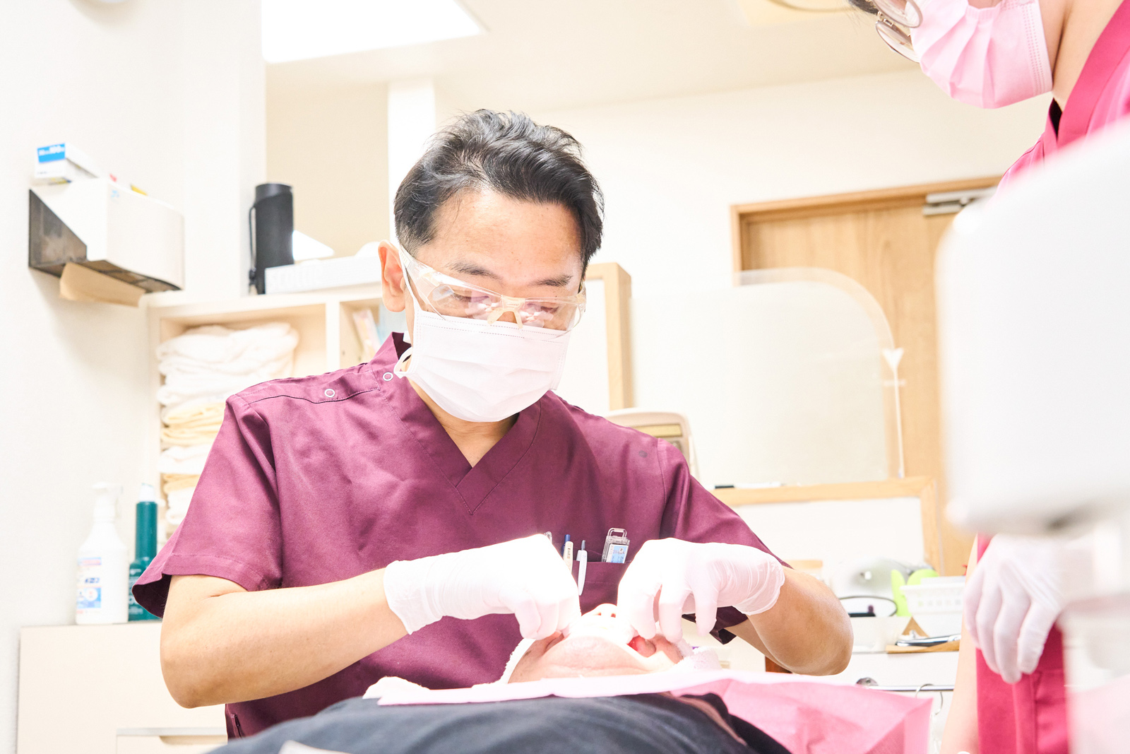 マイクロスコープによって視野を拡大し、細部まで確認しながら処置を行うため、切開を最小限に抑えられ、傷口も小さく済みます。従来のように歯肉を大きく開く必要がないため、患者さんの身体への負担も大幅に軽減されています。